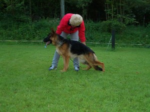 Übermittelgroß, Pigment sehr gut, ausdrucksvoll, mittelkräftig, gehaltvoll, Gebäudeverhältnisse sehr gut, hoher langer Widerrist, sehr gute Ober- Unterlinie, Kruppenlänge und -lage gut, sehr gute Winkelungen der Vor- und Hinterhand, mit gut bemuskelten Keulen, ausgeglichene Brustverhältnisse, gerade Front, dunkles Auge, korrekte Ohrenstellung, gerade Schrittfolge, Gangwerk flüssig, bei guter Festigkeit und richtiger Rückenübertragung. Wesen sicher, TSB ausgeprägt,läßt ab.