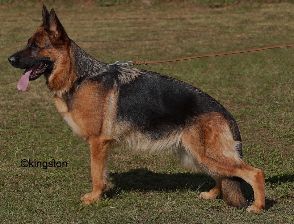Groß, gehaltvoll, kräftig, trocken und fest, sehr gute Gebäudeverhältnisse, sehr guter Ausdruck, gut pigmentiert, feminin. Hoher, langer Widerrist, gerader, fester Rücken, gute Länge und Lage der Kruppe. Vorne gut, hinten sehr gut gewinkelt, ausgeglichene Brustverhältnisse, gerade Front. Geradetretend, sehr kraftvolle, sehr raumgreifende Gänge, bei guter Erhabenheit. Sicheres Wesen, TSB ausgeprägt.